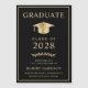 Elegante invitación magnética de graduación de la universidad negra de keepsake con una gorra de graduación de oro y tipografía moderna de oro para el nombre del graduado, el año de clase, la universidad o universidad, el grado y la carrera o los honores.