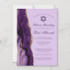 Elegante ágata púrpura y dorada decora el lado de esta bonita ceremonia de Bat Mitzvah lavanda y la invitación de fiesta magnética. El nombre de su hija está escrito en hermosa letra cursiva debajo de la Estrella de David. Un imán de invitación moderno y trendy para una chica judía chic que es llamada a la Torá.
