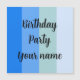 Patrón de franjas azules de Guay con texto: Fiesta de cumpleaños y una plantilla de nombre. Se ajusta a un estilo marítimo.