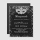 Para una elegante Mascarada, 50 años (o cualquier edad) de cumpleaños. Un fondo negro. Decorado con un falso purpurina de plata y una máscara de máscaras. Personalice y agregue un nombre, edad y detalles del fiesta. El nombre se escribe con un guión de estilo con letras a mano