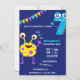 Invitación a la fiesta de cumpleaños del pequeño monstruo con tema azul real.