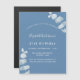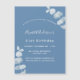 Un fondo azul polvoriento, decorado con tallos de eucaliptos, brotes. Personalice y agregue un nombre y detalles del fiesta.