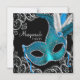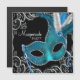 Invitación Magnética Fiesta de disfraz de máscara azul turquesa negro