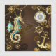 Invitación Magnética Fondo de madera con caballito de mar mecánico