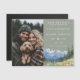 Esta elegante tarjeta magnética de aviso de boda con montañas en acuarela y flores silvestres puede ser personalizada con tu foto e información en tipografía moderna sobre un fondo verde salvia. Diseñada por Thisisnotme©