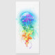Grandes medusas de azulejo brillantes, de dibujos artísticos, con largos tentáculos en blanco, pintadas con fondo multicolor de acuarela. Mariscas arcoiris.