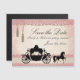 Un cuento de hadas rosado con carruaje tirado por caballos. Guardar la invitación a fecha/evento diseñada para el tamaño de la postal, si utiliza otro tamaño, ajuste el tamaño/ubicación de la imagen y el texto. Crédito de diseño: all-free-download.com