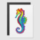 Arco de arcoiris, caballito de mar poligonal sobre fondo blanco. Tatuaje brillante.