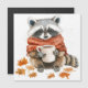 Invitación Magnética Hojas de otoño acogedor mapache de otoño con taza