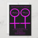 Esta impresionante invitación a una boda magnética está diseñada para lesbianas. Cuenta con dos símbolos femeninos rosados uno al lado del otro. El fondo es negro y hay un texto rosa personalizable dentro de cada uno de los símbolos para poner nombres. Hay más texto de personalizable para que pueda agregar todos los detalles.
