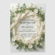 Elegante corona de lirios y hiedra con un mantel delicado alrededor del fondo. Perfecto para bodas, duchas de novias o duchas para bebés.