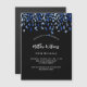 Moderna, elegante e invitada. Un fondo negro decorado con un confeti azul. Personalice y agregue un nombre y detalles. Texto blanco.