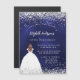 Una invitación magnética moderna, elegante y glamorosa para una fiesta de cumpleaños número 18 (o cualquier edad). Un fondo azul marino con un falso purpurina, chispas, un chica usando un vestido de bata de pelota. El color azul es desigual. El nombre está escrito con una escritura de estilo con letras a mano moderna. Personalice y agregue los detalles de su fiesta.