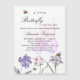 Un fondo blanco. Decorada con una gran mariposa, abejas y flores silvestres pintadas de violeta y rosa. Personalice y agregue un nombre y detalles del fiesta.