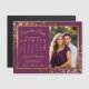 Estas hermosas tarjetas magnéticas magenta plum o cassis moradas y doradas son la manera perfecta de hacer saber a su familia y amigos que deben guardar la fecha para su próximo boda. El elegante diseño presenta su foto dentro de un marco de Relieve metalizado falso dorado con delicados rizos y remolinos en las esquinas. Hay elegantes guiones y un calendario de personalizables que muestra el mes de tu boda con un corazón alrededor de tu día especial. Conveniente y práctico, esta tarjeta le gustará.