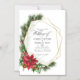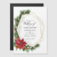 Invitación de boda magnética de Navidad rústica de moda con marco geométrico dorado y tipografía manuscrita con campanas de trineo, flores de poinsettia, acebo, muérdago y pino.