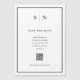 Estas elegantes y modernas tarjetas magnéticas permiten guardar las tarjetas de fecha con un sencillo diseño minimalista en blanco y negro, con un marco clásico en el borde y un punto para añadir el código QR donde los clientes pueden encontrar más detalles bodas. Añada sus iniciales o su monograma para hacerlas completamente propias.