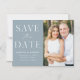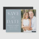 Anuncie su fecha boda con esta elegante y moderna foto ahorre el imán de fecha. El diseño incluye "Save the Date" en serif blancos y fuentes de script con un fondo azul polvoriento. Personalice el minimalista guardar el imán de fecha agregando sus nombres, fecha, ubicación del boda y foto. El simple guardar el imán de fecha es perfecto para cualquier tema boda.