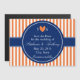 Invitación Magnética Monograma Rayas Naranjas y Blancas con Azul Real