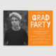 Las invitaciones magnéticas de la fiesta de graduación incluyen la foto del graduado con "Grad" en un estilo tipográfico blanco de pintura con aerosol contra un fondo naranja o color de su elección. Personalice la invitación añadiendo el nombre del graduado, el nombre de la escuela, el año de graduación y los detalles de la fiesta de graduación.