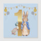 Pedro el Conejo con el pato de charco de Jemima y un oro número uno para ese primer cumpleaños especial.