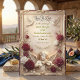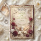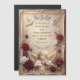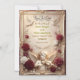 Traslade a sus invitados a una era de romance atemporal con este diseño opulento del Viejo Mundo que presenta un querubín violinista y exuberantes flores burdeos.