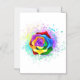 Rosa grande y floreciente con pétalos de arco iris sobre fondo blanco, pintado con salpicaduras de pintura colorida y brillante. 3.ª