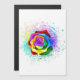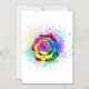 Rosa grande y floreciente con pétalos de arco iris sobre fondo blanco, pintado con salpicaduras de pintura colorida y brillante. 3.ª
