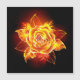 Rosa en llamas del fuego y la llama sobre fondo negro.