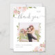 Esta sencilla y elegante tarjeta de agradecimiento de boda magnética presenta rosas rosadas románticas con hojas verdes y texto gris suave sobre un fondo blanco limpio para un aspecto que logra ser a la vez moderno y de inspiración vintage.