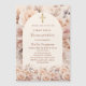 Una invitación magnética moderna, elegante y romántica para una Primera Comunión. Crema, fondo de color melocotón, armazón, decorado con flores de color crema. Personalice y agregue su nombre y los detalles.