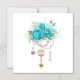 Llave de oro antiguo con rosas turquesa de moda decorados con hojas de oro blanco y cuentas rosas y azules. Color de moda. Rosas turquesas. Oro blanco. Tifanía azul.