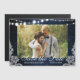 Rústico Boda Blue Wood String Luces Lace Photo Save Date Magnetic Invitación Card