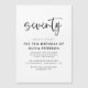 Esta moderna invitación a la fiesta de cumpleaños 70 en blanco y negro presenta una elegante tipografía moderna. La palabra "setenta" aparece en caligrafía en forma de guión. Perfecto para marcar el tono elegante de una maravillosa fiesta de cumpleaños 70. El esquema de color de la invitación es fácil de personalizar, tanto en el fondo como en la tipografía, por lo que puedes elegir un esquema de dos colores a medida o seguir con el clásico, minimalista, blanco y negro. Disponible como invitaciones Zazzle con una variedad de opciones y magníficas existencias de papel o como archivo digital para descarga inmediata que usted puede imprimir, si tiene prisa! ¡Cumplir 70 años nunca se veía tan bien!