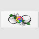 símbolo infinito con rosa arcoiris sobre fondo blanco.
