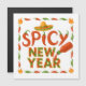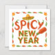 Celebrate the New Year with this fun festive holiday invitation. Delight friends and co-workers with this whimsical design of flame emojis with red and green chili peppers that spell out "Spicy New Year", a sombrero on top and hot sauce pouring out over the year. Your friends will get a kick out of these invitations to join you for some fun ringing in the New Year. Matching plates, napkins, cups, keychains, stickers, magnets and coasters available as well.