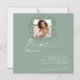 Hojas de eucalipto atemporales sobre un fondo verde salvia forman una corona etérea alrededor de esa foto especial de la futura novia, creando una aura elegante y romántica. Combina bien con la mayoría de la papelería de boda con tema de eucalipto. Personalice fácilmente con su información personal, incluida su foto, para hacerlo suyo.