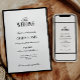Tarjeta de invitación a la boda clásica en blanco y negro para bodas formales con un diseño monocromo atemporal con un borde negro refinado y una elegante combinación de tipografía de sif y guiones. Esta invitación minimalista ofrece un ambiente estético limpio y sofisticado, ideal para bodas de corbata negra, ceremonias elegantes en la ciudad o celebraciones tradicionales. El estilo audaz de los títulos y el diseño equilibrado crean una invitación de gran impacto al tiempo que mantienen el diseño general simple y pulido. Perfecto para parejas que buscan una invitación formal a la boda con un moderno toque clásico, esta tarjeta ofrece elegancia sobria que complementa una amplia gama de temas y lugares bodas. Disponible como tarjetas impresas o como descarga digital instantánea.