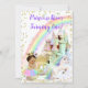 ¡Una invitación mágica para una celebración mágica! Castillo arcoiris con carro y unicornio y por supuesto la pequeña princesa bonito en su tutu arcoiris y corona.