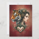 Mundo mágico de la floral de steampunk: Un diseño artístico y mágico de retrato que combina motivos naturales con elementos mecánicos. El motivo es el perfil de una mujer y el perfil de un tigre para simbolizar la fuerza y el enfoque. Debajo de las dos figuras se encuentra un marco en forma de corazón decorado con flores y vegetación y detalles sutiles de las relojería.