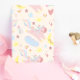 Nuestra colección "Magical Unicorn" incluye un bonito ilustracion unicornio con una manga y una cola color arcoiris pastel que salta sobre el arcoiris junto con emocionantes accesorios esparcidos por el cielo como diamantes, corona y flores. Personalice con sus propias letras y fotos con sólo un clic del botón. Consulte nuestra tienda para ver más elementos coincidentes de esta colección.