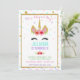 Invitación perfecta para una fiesta de cumpleaños de unicornio o una ducha de bebé. Colores arcoiris y purpurina de oro digital. Todo el texto es personalizable.