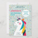 ¡Haz que el día especial de tu hijo sea aún más mágico con esta encantadora invitación de cumpleaños con temática de unicornio! Este diseño lúdico presenta un unicornio de ensueño con una forma de arcoiris, fondo de confeti alegre y texto completamente editable. Perfecto para cualquier edad, esta invitación es ideal para chicas que aman los destellos, los arcos y la diversión.