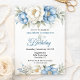 Invitación Magnolia Azul Preciosa y Peonía Cumpleaños 80
