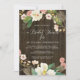 "Invitación a la ducha de novias de la Madera Rústica Floral de Rubor Magnolia Blanca". Las flores de la Magnolia blanca cremosa con ramas, ramas de árboles y flores rosas rubias se combinan con la tipografía de escritura a mano sobre un fondo rústico de madera de granero oscuro y recuperado para una hermosa invitación a la Ducha Bridal pintada con acuarela. Copyright, artista y diseñadora con licencia internacional, Audrey Jeanne Roberts.
