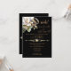 Hermosas flores blancas de Magnolia y anillos bodas dorados sobre un fondo negro y texto dorado. Un hermoso divisor de diamantes separa la palabra "Boda" del resto del texto de la invitación