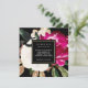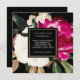 Estas hermosas invitaciones nupciales presentan un moderno diseño de magnolia acuarela en vivos tonos rosa, blanco, dorado y verde con un centro de marcos negros y dorados.