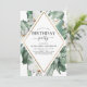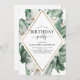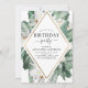 Flores de Magnolia Tropical con Palm de Verdor Floral y Relieve metalizado dorado Faux Invitaciones de Fiesta de Borde Geométrico o Verano de Cualquier Edad - incluye tipografía de escritura hermosa y elegante con flores botánicas tropicales modernas y vegetación para los especiales 13, 15, 16, 18, 30, 40, 50, 60, fiesta de cumpleaños 70, 80, 90, 100.