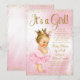 Princesa rosa y dorada ducha de bebé por invitación por correo con una adorable princesa rubia bebé con un tutu rosado y una corona dorada con una cuerda de perlas en un hermoso fondo rosa y dorado. Esta elegante invitación a la ducha para bebés por correo rosa y dorado se personaliza fácilmente para tu evento añadiendo tus detalles en el estilo de letra, color y texto de tu elección.