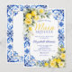 The back of the invitation continues the blue tile and watercolor lemon floral design, creating a cohesive and polished stationery set. Easily personalize with your event details to create a memorable and beautifully styled bridal shower invitation.